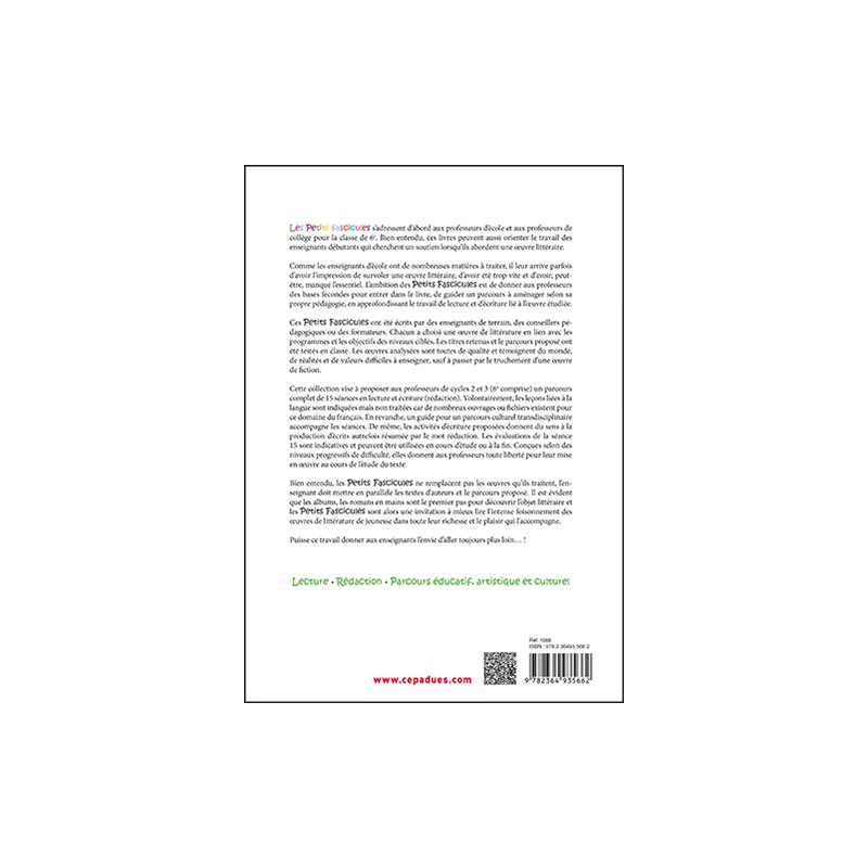 Comme les enseignants d’école ont de nombreuses matières à enseigner, il leur arrive d’avoir l’impression de survoler une œuvre littéraire, d’avoir été trop vite et d’avoir, peut-être, manqué l’essentiel. L’ambition des Petits Fascicules est de donner aux professeurs des bases fécondes pour entrer dans le livre, de guider un parcours à aménager selon sa propre pédagogie, en approfondissant le travail de lecture et d’écriture lié à l’oeuvre étudiée.